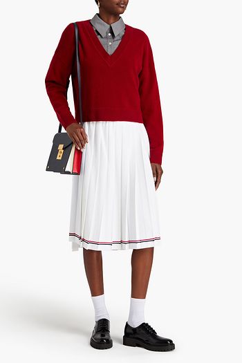 Pleated printed silk and cotton-blend tweed and faille skirt