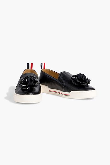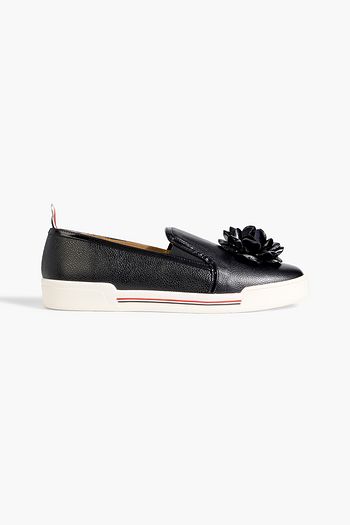 Floral-appliquéd pebbled-leather slip-on sneakers