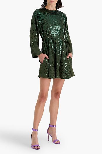 Sequin-embellished silk-crepe mini dress