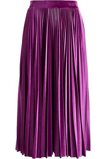 Pleated stretch-velvet midi skirt