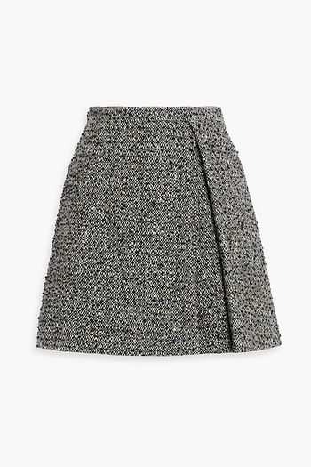 Embellished pleated wool-tweed mini skirt