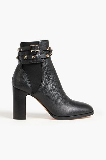Rockstud pebbled-leather ankle boots