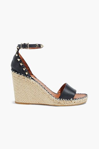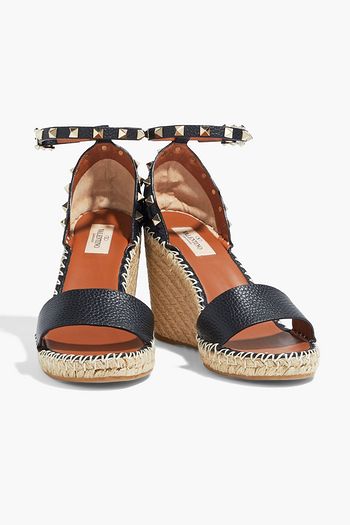 Roman Stud quilted pebbled-leather espadrille slides