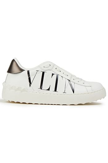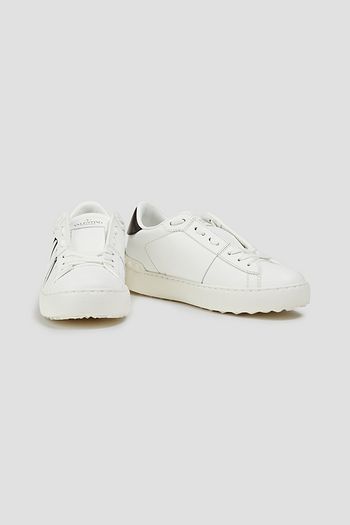 Roman Stud metallic smooth and pebbled-leather sneakers