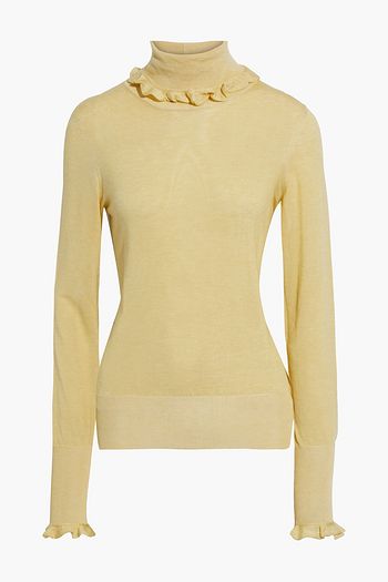 Ruffle-trimmed knitted turtleneck sweater