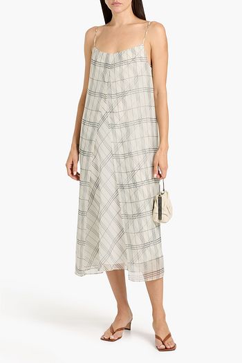 Layered checked crepe de chine midi dress
