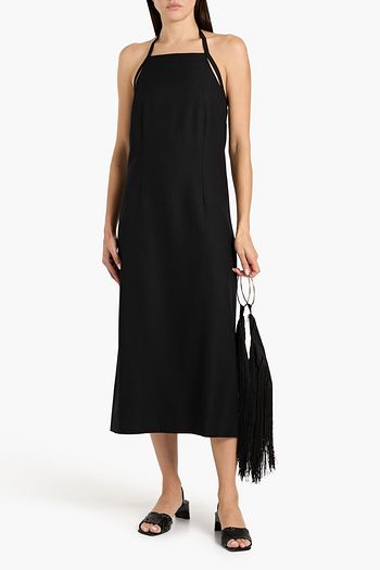 Shirred woven halterneck midi dress