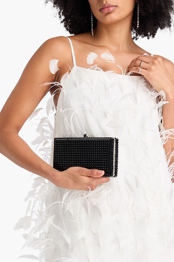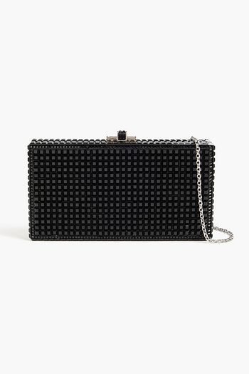 Sleek Rectangle crystal-embellished silver-tone clutch