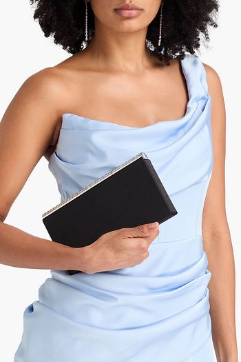 Sleek Rectangle crystal-embellished silver-tone clutch