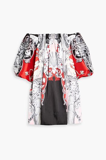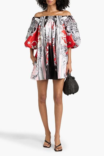 Off-the-shoulder crystal-embellished printed silk crepe de chine mini dress