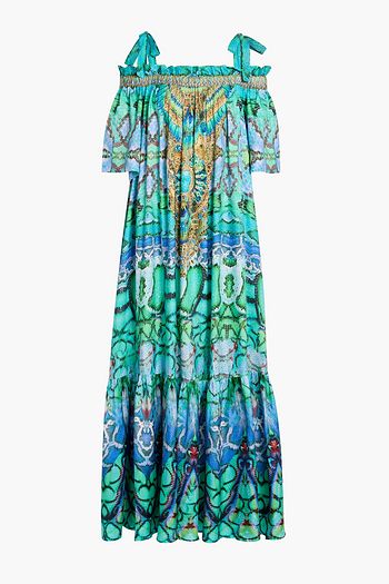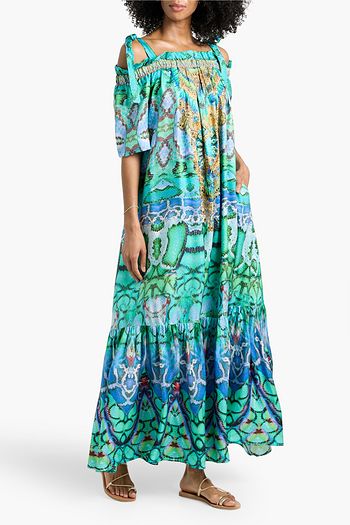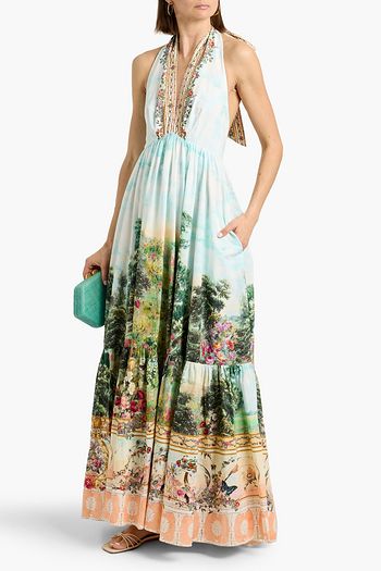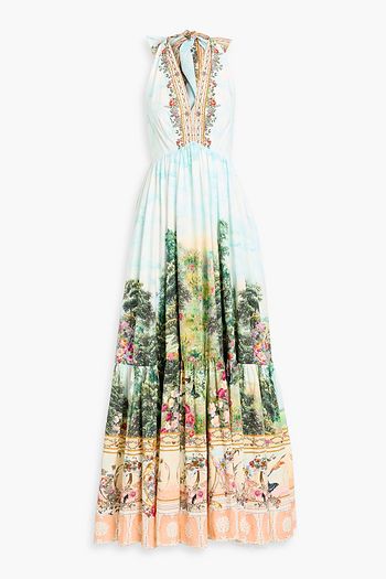 Crystal-embellished printed cotton-poplin maxi dress