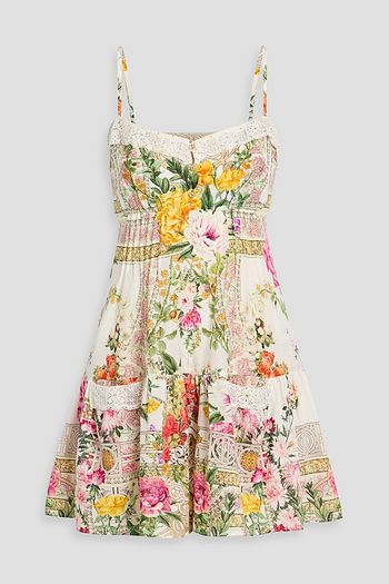 Crystal-embellished floral-print silk crepe de chine mini dress