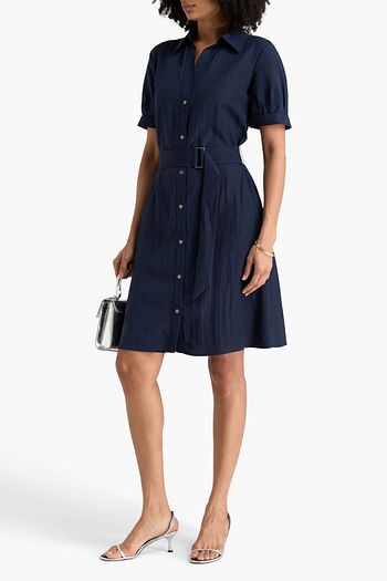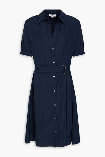 Belted ruffled cotton-blend shirt dress