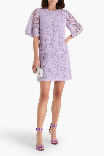 Guipure lace-paneled wool-blend mini dress