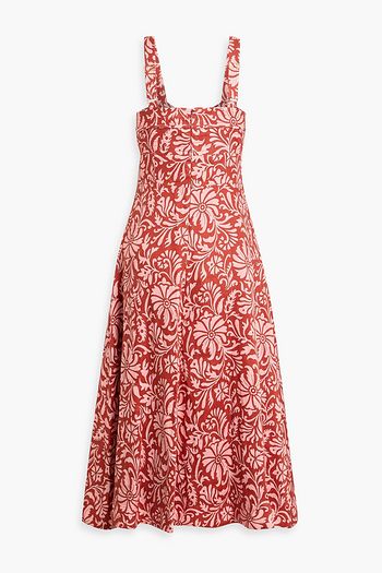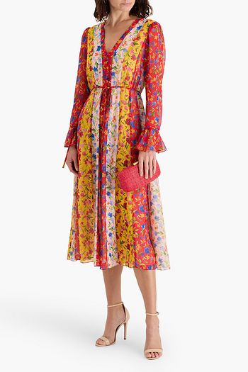 Ruffled floral-print linen and silk-blend gauze midi dress