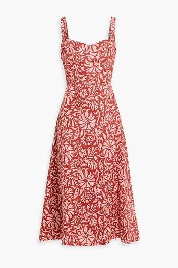 Lana strapless floral-print ramie midi dress