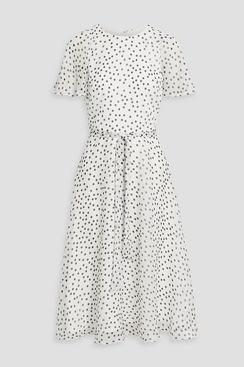 Belted printed silk-twill midi dress