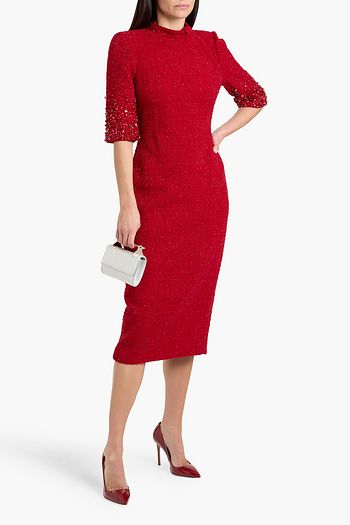 Crystal-embellished ribbed cotton-blend jersey midi dress
