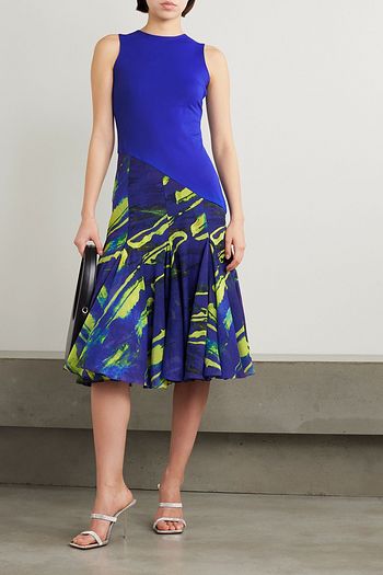 Printed voile and stretch-jersey midi dress
