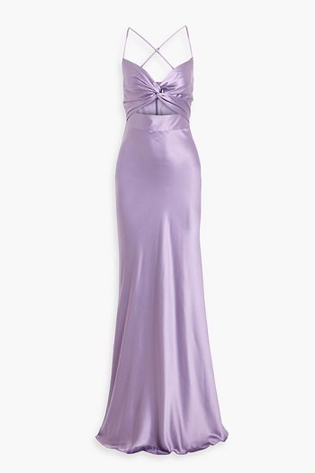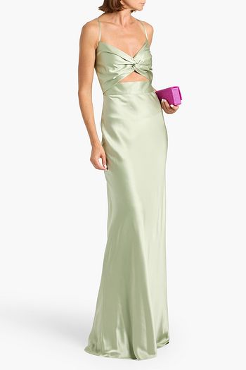 Gabriella asymmetric silk-blend satin halterneck midi dress
