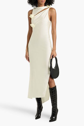 Gabriella asymmetric silk-blend satin halterneck midi dress