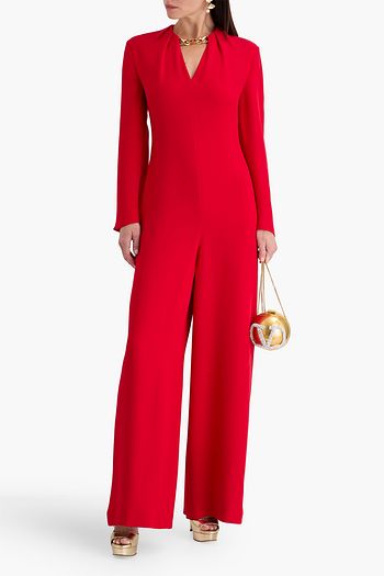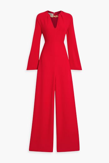 Cold-shoulder crystal-embellished leopard-print silk crepe de chine playsuit
