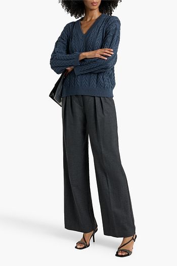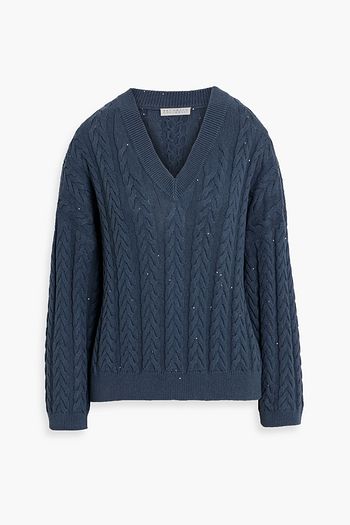 Sequin-embellished cable-knit cotton-blend sweater