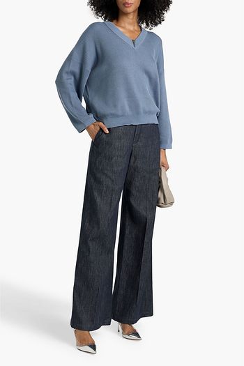 Bead-embellished ribbed cotton sweater