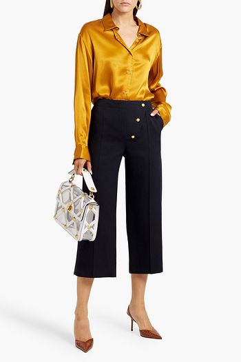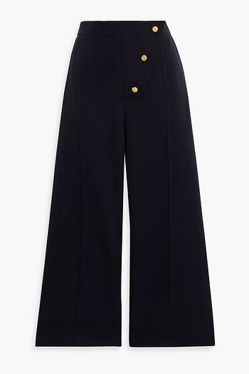 Button-embellished wool-blend wide-leg pants