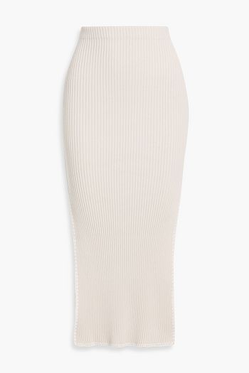 Steer cutout ribbed wool-blend midi skirt