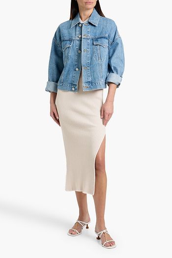 Denim effect-print stretch-cotton jersey midi skirt