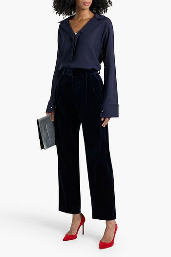 Zengel satin-trimmed grain de poudre straight-leg pants