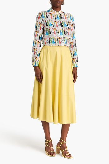 Chintz pussy-bow floral-print embroidered ramie blouse