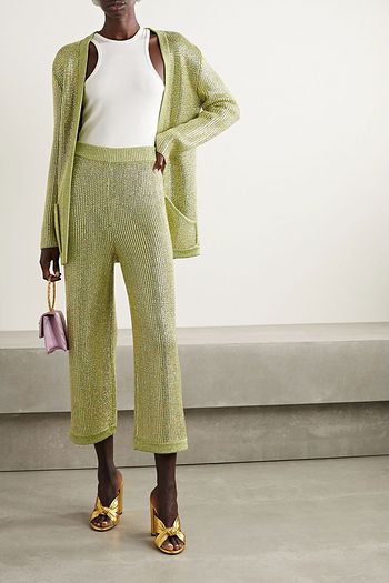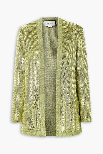 Bead-embellished jacquard-knit wool, cashmere and silk-blend sweater