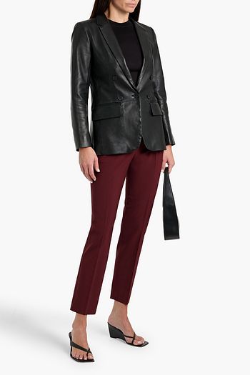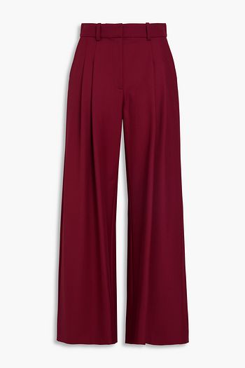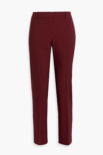 Cropped faux pearl-embellished wool-twill straight-leg pants