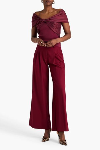 Guipure lace-paneled wool and mohair-blend straight-leg pants