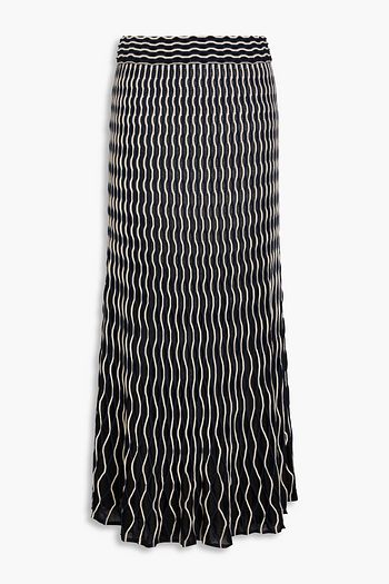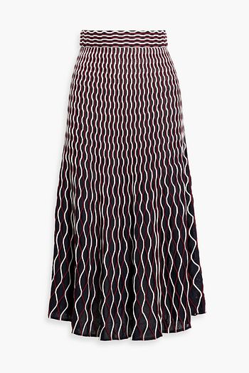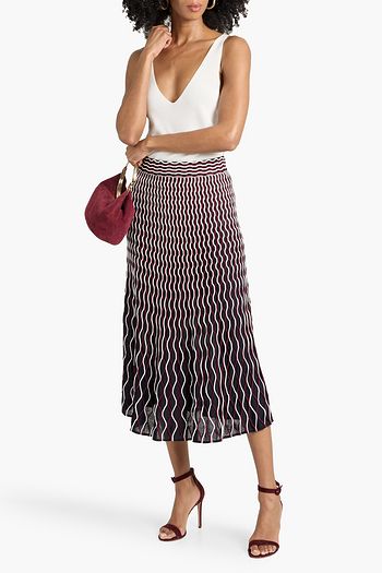 Metallic embellished pointelle-knit cotton-blend midi skirt