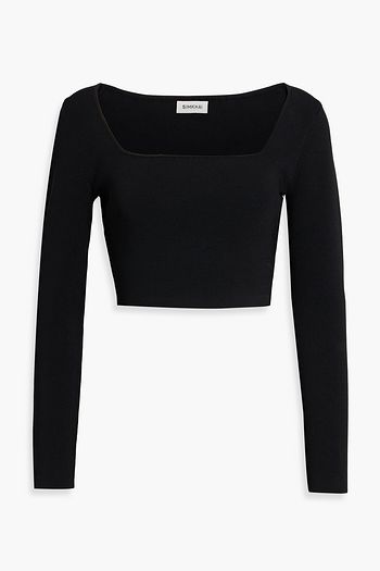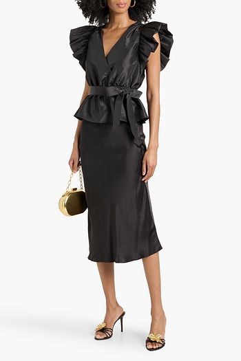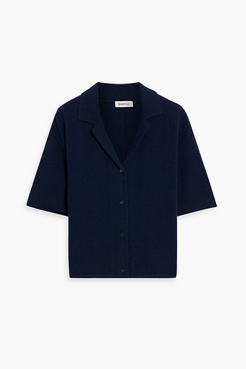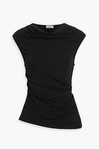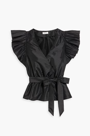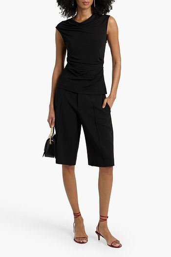 Ellen off-the-shoulder organic wool and silk-blend twill top