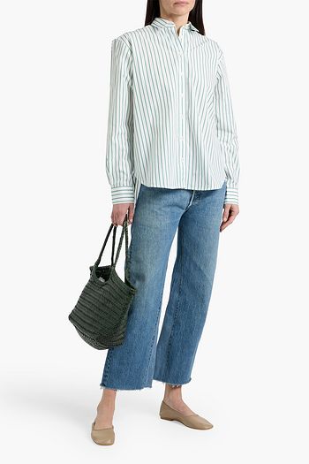 Maia cropped sequin-embellished striped cotton-blend poplin shirt