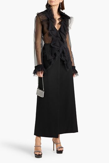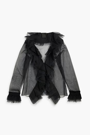 Ginette lace-trimmed ruffled cotton and silk-blend blouse