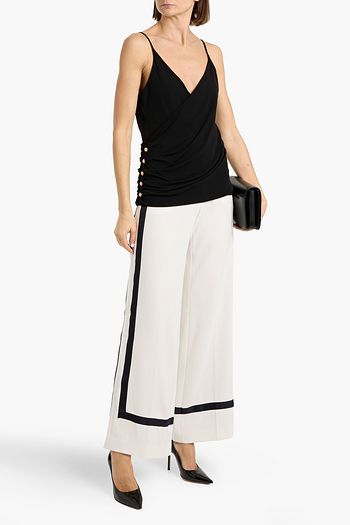 Cropped appliquéd ribbed cotton and merino wool-blend tank