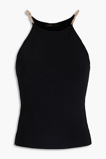 Chain-embellished ribbed wool-blend top