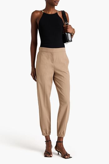 Cropped crystal-embellished twill top
