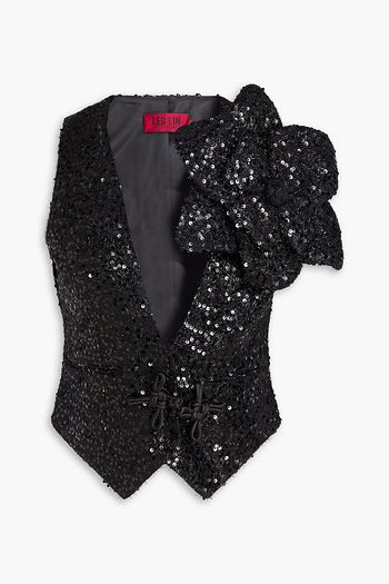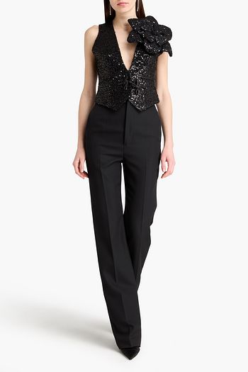 Off-the-shoulder crystal-embellished lace-trimmed wool-blend tweed jacket