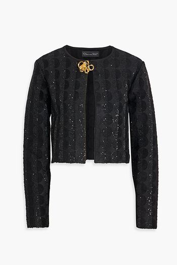 Off-the-shoulder cropped striped chenille and jersey sweater