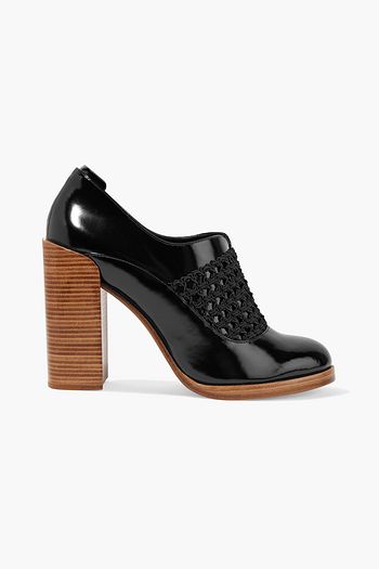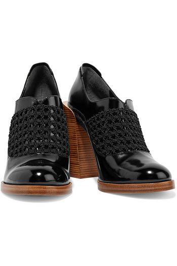 Claridge woven-paneled glossed-leather pumps