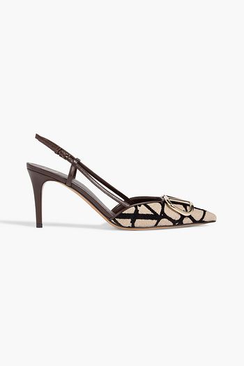 VLOGO Toile Iconographe flocked canvas slingback pumps