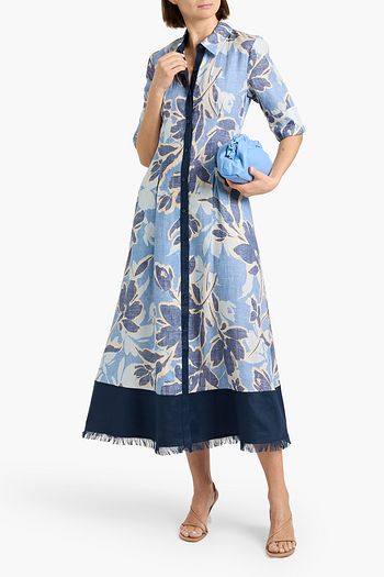 Oversized printed cotton and linen-blend twill midi shirt dress