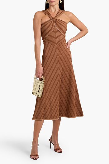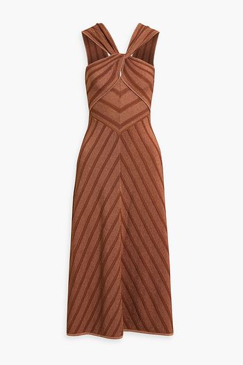 Serpent one-shoulder metallic ribbed-knit mini dress