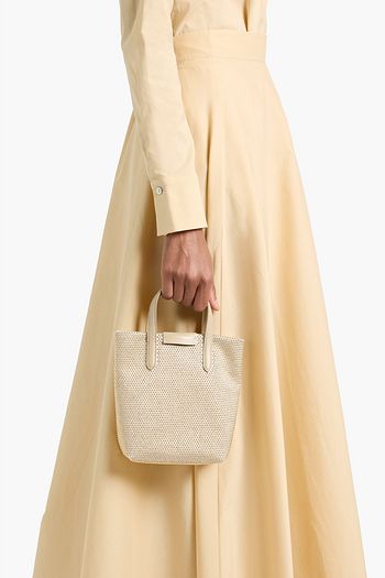 Leather-trimmed faux raffia bucket bag